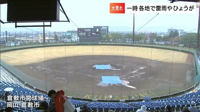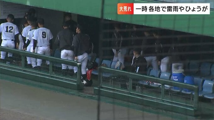 突然の雨のため高校野球の秋の中国大会が一時中断となり、その後、順延となる試合も。