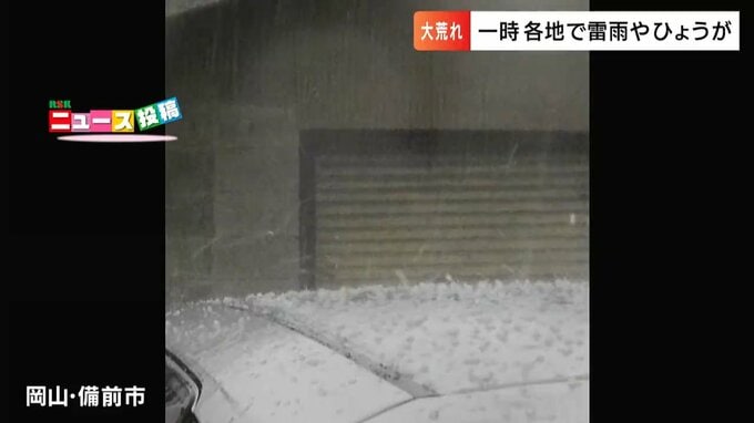 また岡山県備前市では、雨だけでなく雹(ひょう)が降り、大きな音とともに車に打ち付けました。