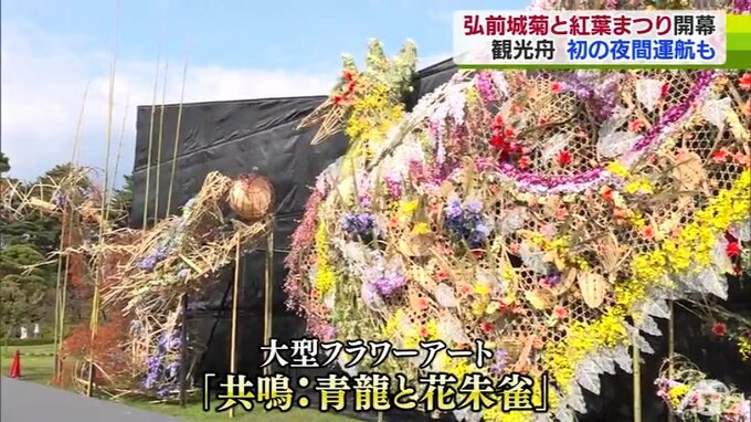 青森県弘前市では弘前城菊と紅葉まつりが27日開幕し、訪れた観光客が色づきはじめた弘前公園の木々を楽しんでいました。弘前城菊と紅葉まつりは、27日午後4時から弘前市の櫻田宏市長はじめ関係者が出席して開催式…