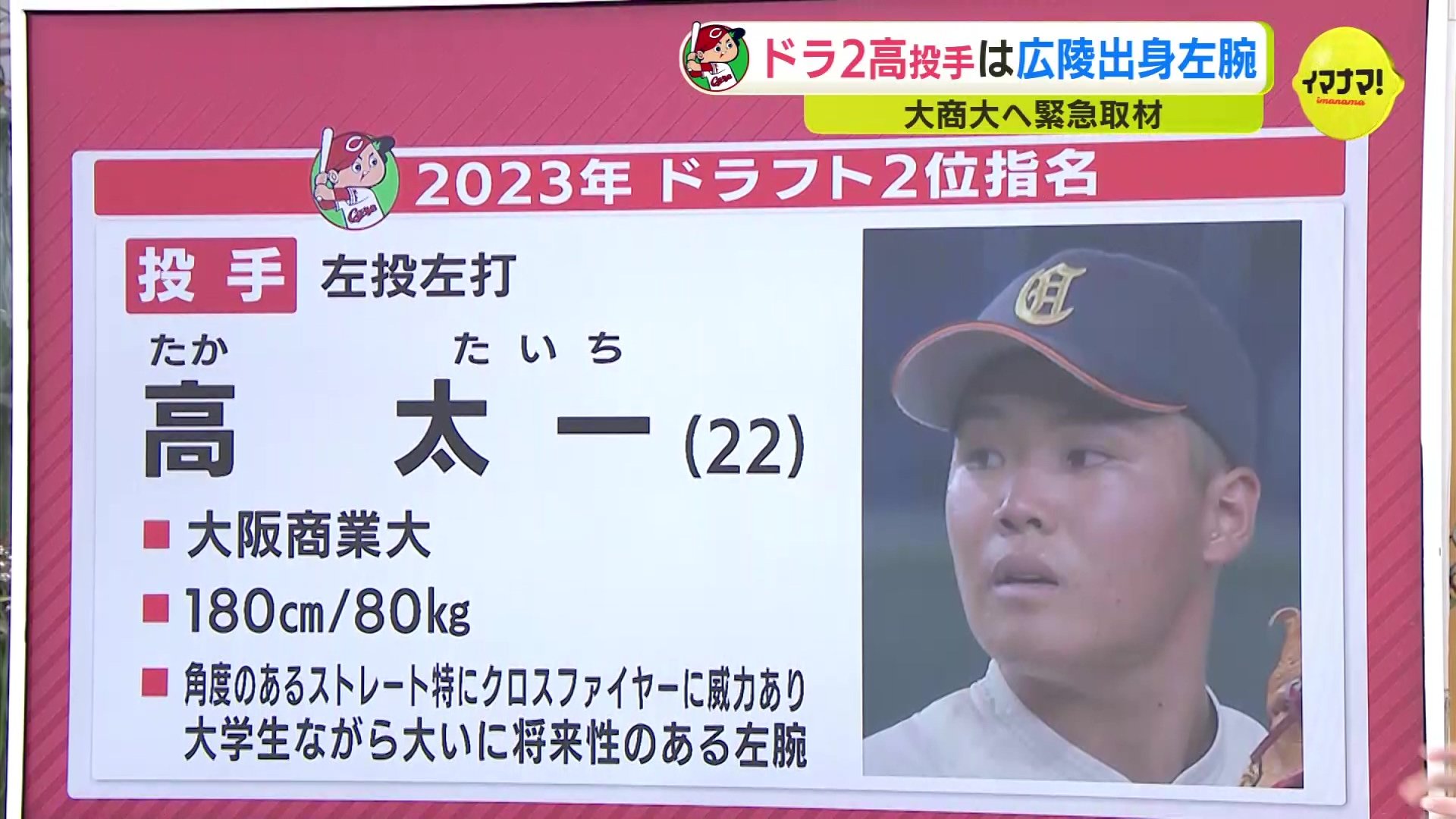プロ野球ドラフト会議で広島カープが2位に指名した大阪商業大学の 高太一 投手(22)に直撃取材しました。