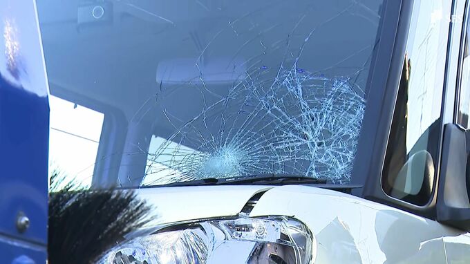 「車の前の部分が割れていて、フロントガラスにもひびが確認できます」