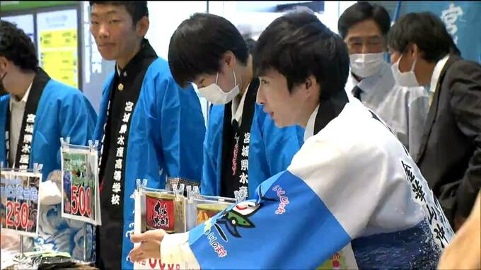 宮城県石巻市の水産業の魅力をPRしようと、JR仙台駅で28日、県水産高校の生徒が作った水産加工品などを配布・販売する催しが開かれました。高校生:「いらっしゃいませ~、水産高校です」石巻市の県水産高校の生徒…