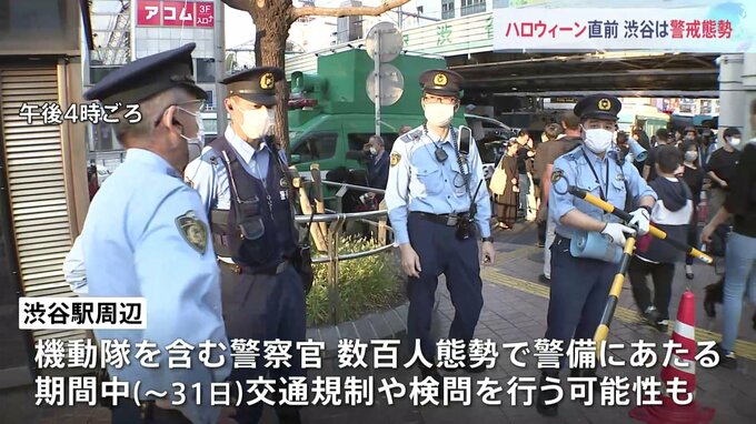ハロウィーン直前の週末、東京・渋谷駅の周辺では厳重な警戒態勢が敷かれています。記者「東京・渋谷駅の前には『渋谷はハロウィーンイベントの会場ではありません』と、大きく注意喚起の看板が張り出されています…