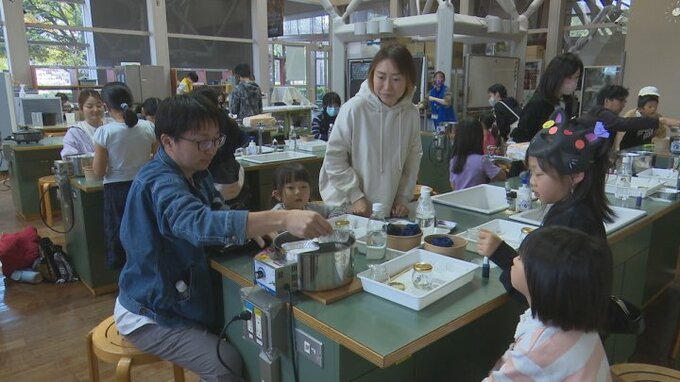 ハロウィーンにちなんだキャンドル作りなど、科学について学ぶイベントが、山梨県甲府市の県立科学館で開かれました。参加した子どもたちは、配られた仮装用のマスクに絵や文字をデザインしたほか、糸を引っ張ると…