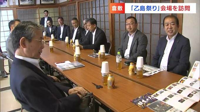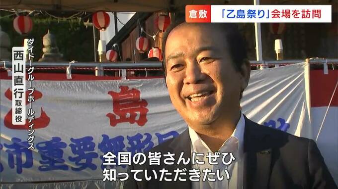 全国の祭りを支援している飲料メーカーの関係者らが、岡山県倉敷市で行われた祭りの会場を訪問しました。