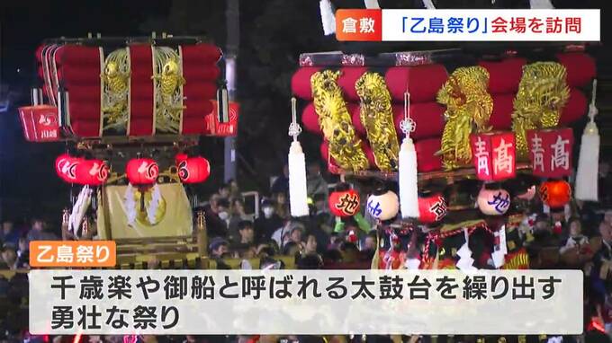 「乙島祭り」が行われた倉敷市の戸島神社を訪れたのは、テレビ番組「日本の祭り」を通じて全国の祭りを紹介しているダイドードリンコの関係者らです。約700年の歴史を持つ「乙島祭り」は千歳楽や御船と呼ばれる太鼓台が、町や神社に繰り出される勇壮な祭りです。この「乙島祭り」が今年の番組で取り上げられることになり、伊東倉敷市長に選定証が手渡されました。