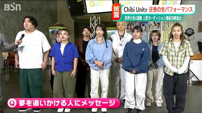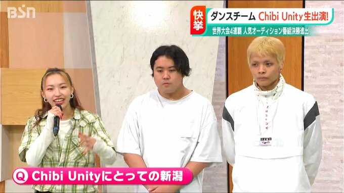 「僕たちも決して最初から結果が出たわけじゃなくて、本当にダンスがただ好きだった子どもたちからできたチームで、今ここにきて、このような結果を残すことができました。年齢とか場所とかも関係なく、どんな境遇でも、どんな夢でも、いつからでも夢を追うことは絶対に良いと思います。僕たちはこの新潟という場所で、皆さまの挑戦の背中を押せるように、これからも僕たちチビユニティも挑戦を続けていこうと思います」