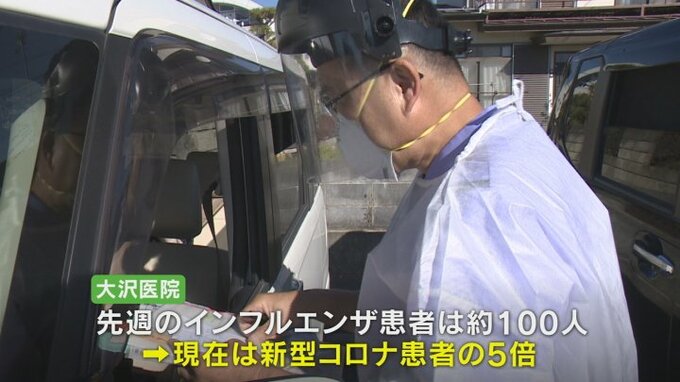 こちらのクリニックでは先週1週間のインフルエンザの感染者は約100人で10月に入って新型コロナの感染者を逆転し、現在はコロナ患者の5倍に上っています。