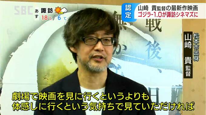 松本市出身の山崎貴監督の最新作映画で、岡谷市でロケが行われた「ゴジラー1.0(ゴジラマイナスワン)」が、「諏訪シネマズ」に認定されました。
