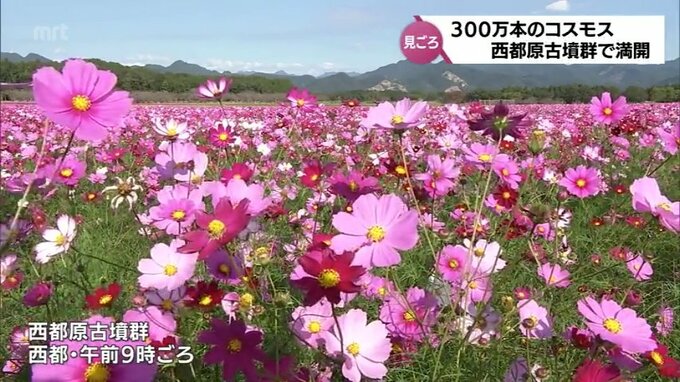 宮崎県西都市にある西都原古墳群では、300万本のコスモスが現在満開となっています。一面に広がるピンクと白の花のじゅうたん。西都市の西都原古墳群では、およそ6ヘクタールの敷地に植えられた300万本のコスモス…