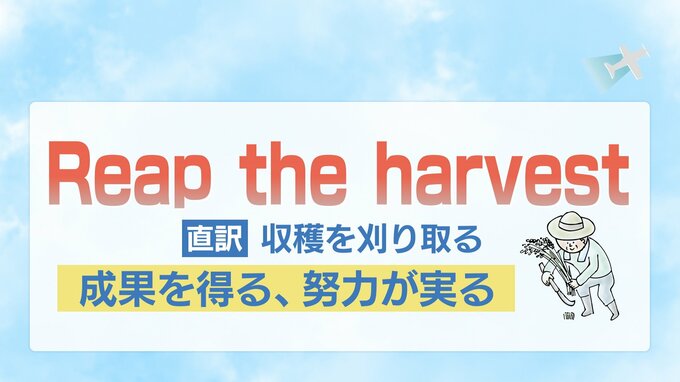 直訳で「収穫を刈り取る」 意味は「成果が出る」です。