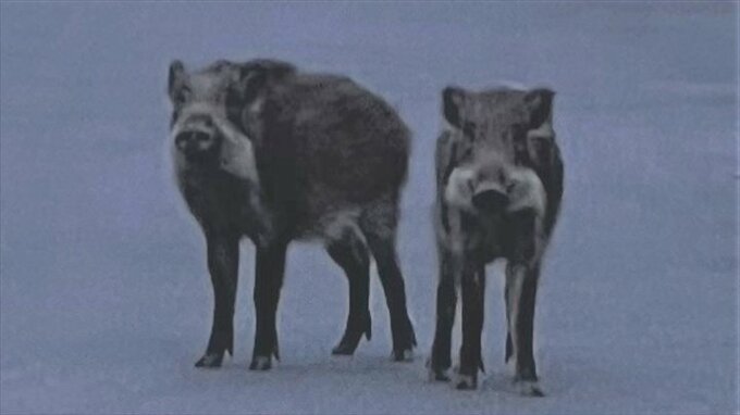この秋は全国各地の市街地で野生動物の目撃情報が相次いでいます。30日朝に甲府市の住宅街で2頭のイノシシが目撃され、自治会で注意を呼び掛けています。道路中央にどっしりと居座る2頭のイノシシ。30日午前7時…