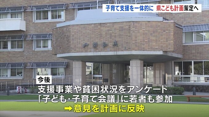 山梨県の長崎知事は「この計画を子ども子育て施策の中心に置き、危機的な状況にある人口減少のトレンドを反転するべく取り組む」としていて来年度内にまとめる考えです。