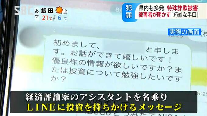 北信地方に住む50代の女性会社員は、架空投資で100万円余りの被害に遭いました。