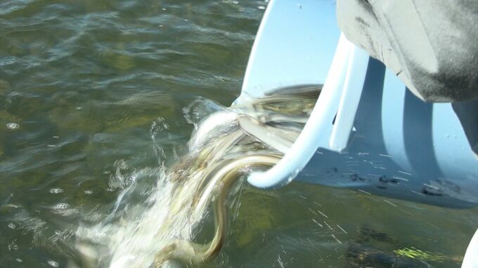 水産資源を守ろうと、岡山県北の吉井川水系の河川で津山市の漁業関係者がウナギを放流しました。放流されたのは静岡県で中間育成された、体長30センチ前後、重さ50グラムのウナギの幼魚です。津山市の吉井川漁協で…