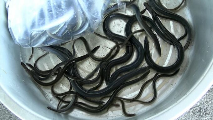 放流されたのは静岡県で中間育成された、体長30センチ前後、重さ50グラムのウナギの幼魚です。