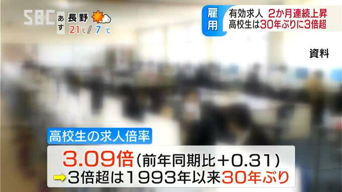 一方、2024年春に卒業する高校生に対する求人倍率は3倍を超え、30年ぶりの高い水準となっています。