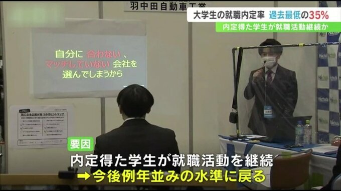 山梨労働局は大学の報告などから内定を得た学生が、より良い条件の企業を求めて就職活動を続けていることが考えられるとし、大学生の就職内定率は今後、例年並みの水準に戻ると見ています。