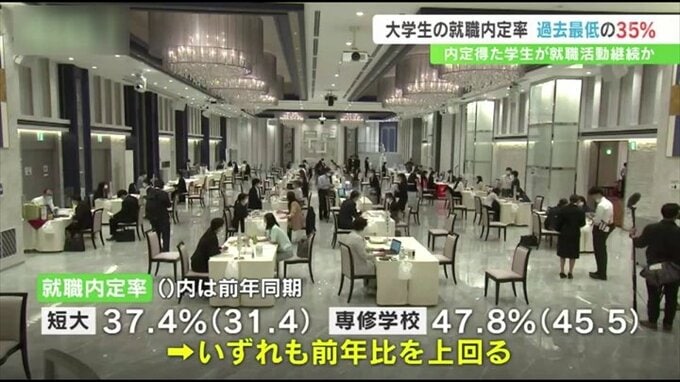 一方、県内の短期大学の就職内定率は37.4%、専門学校は47.8%で、いずれも2022年の同じ時期を上回っています。