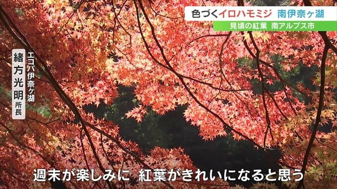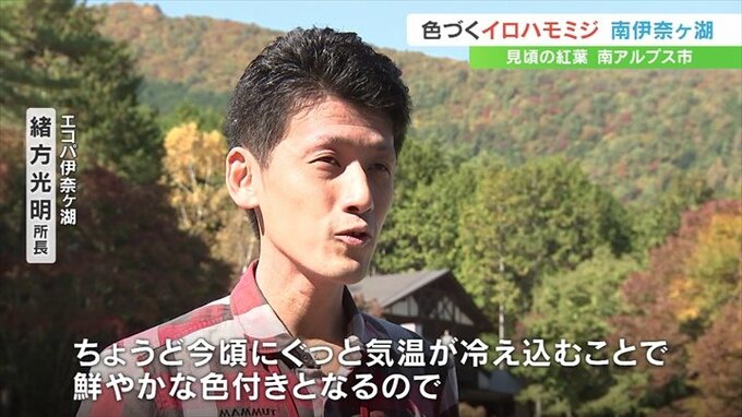 ちょうど今頃にぐっと気温が冷え込むことで鮮やかな色付きとなるので、週末が楽しみに、紅葉がきれいになると思う。