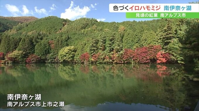 南アルプス市の南伊奈ヶ湖の紅葉です。