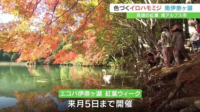 南伊奈ヶ湖の紅葉は11月中旬までが見頃で、周辺では11月5日まで紅葉ウィークとして「パン焼き体験」やステージイベントなどが開かれます。