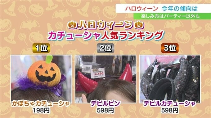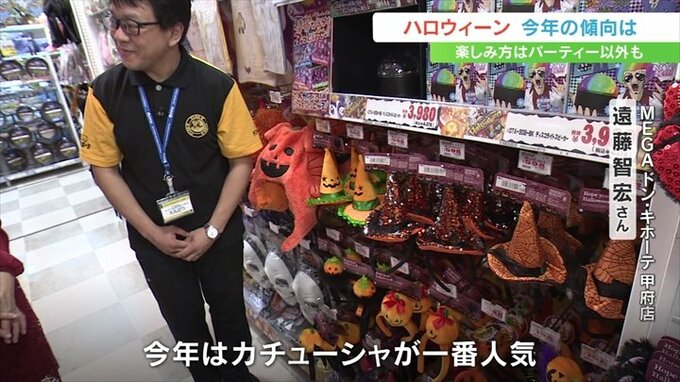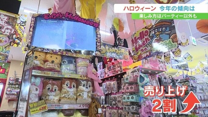 毎年特設コーナーを設けていて、グループ全体のハロウィーングッズの売り上げは去年と比べ2割以上増加しました。