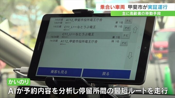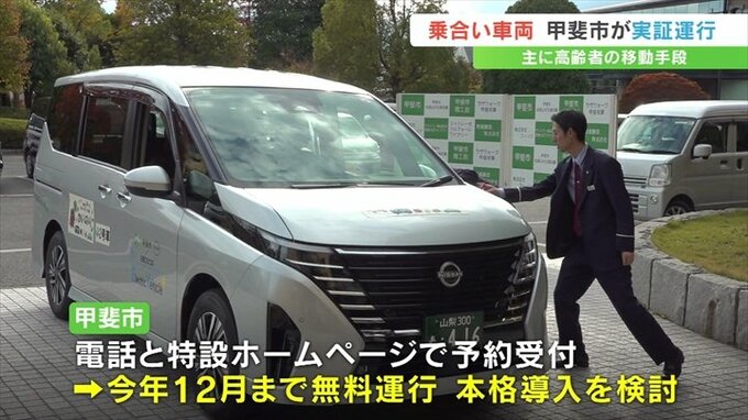 甲斐市は電話や特設ホームページで予約を受け付け、今年12月まで無料で運行し、2年後をめどに本格的に導入するか検討します。