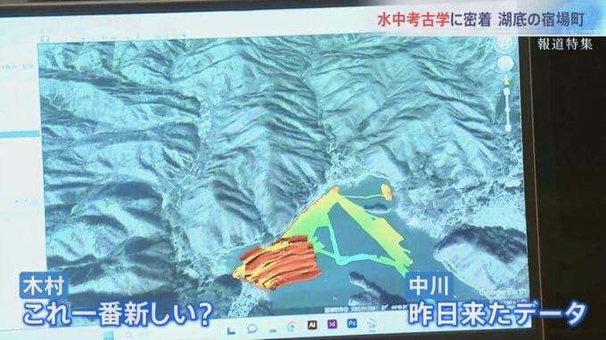 調査初日前夜のミーティングでは、木村たちのもとに、湖底の状態を3次元で確認できる最新のデータが届いていた。