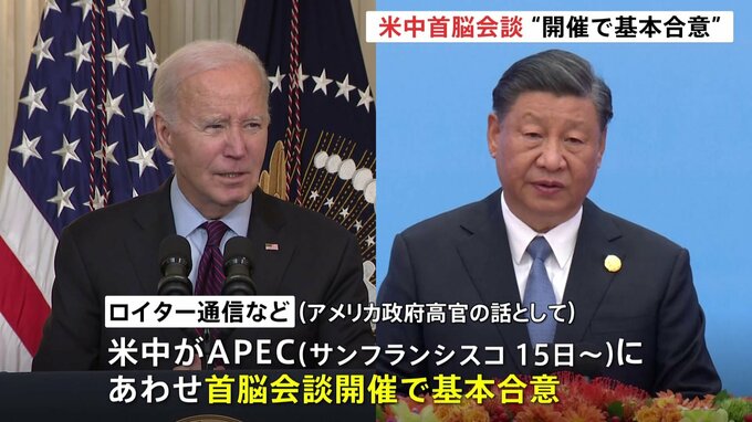 アメリカと中国が調整しているバイデン大統領と習近平国家主席の首脳会談について、今月サンフランシスコで行うことで基本合意したと複数のメディアが報じました。ロイター通信などはアメリカ政府高官の話として米…