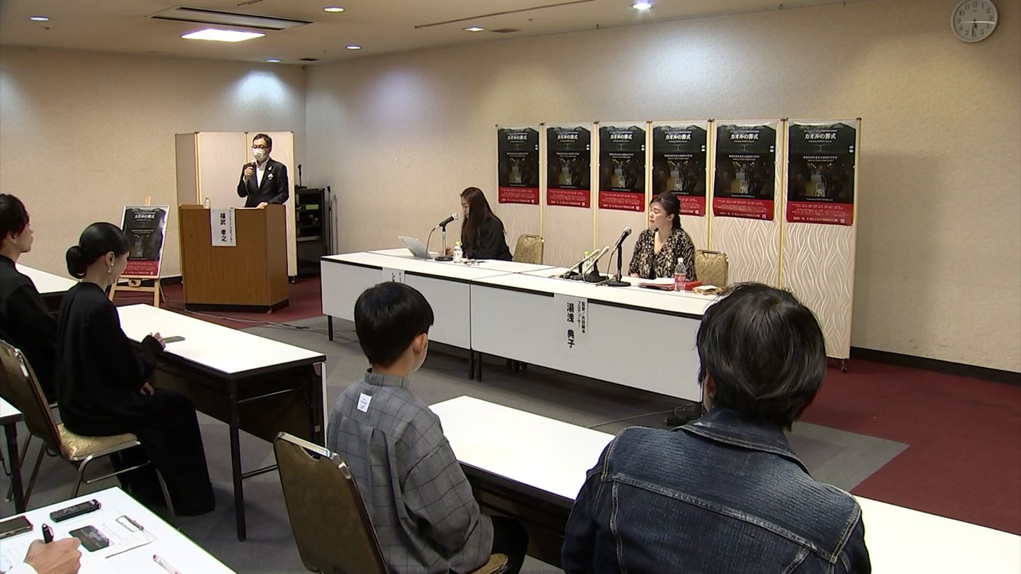 会場では記者会見も行われ、岡山市出身で監督兼プロデューサーの湯浅典子さんらが作品をPRしました。