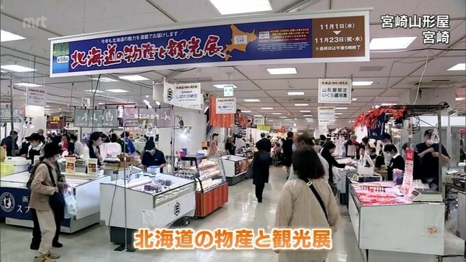 北海道の特産品を一堂に集めた物産展が1日から宮崎市で始まりました。宮崎市の宮崎山形屋で1日から始まった「北海道の物産と観光展」。期間中、宮崎山形屋店内の4つの会場であわせて70の業者が出店しています。会…
