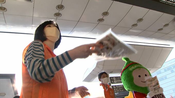 こどもの虐待防止月間でもある11月。JR岡山駅で啓発用のリーフレットなどが配られました。