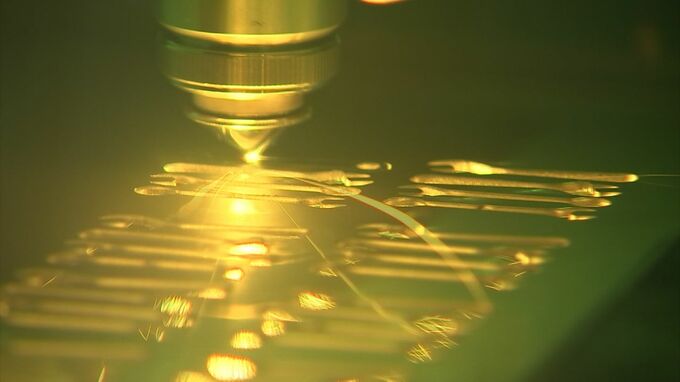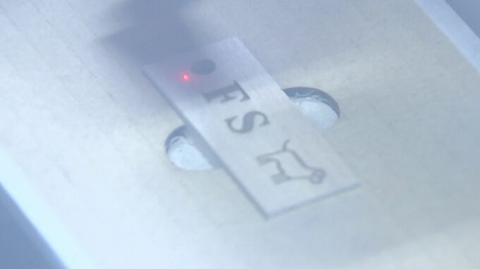 金属用のレーザーを使ってチャームを加工しキーホルダーに取り付けました。