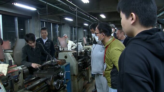 授業で使う工作機械の説明を聞き、進学への期待に胸を膨らませる男性もいました。