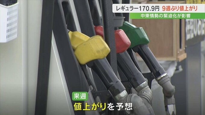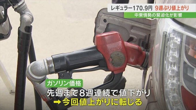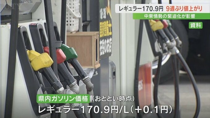 県内のレギュラーガソリンの価格は1Lあたり170.9円で9週ぶりに値上がりに転じました。