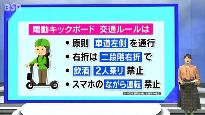 新潟県内では、まだ見かけることが少ない電動キックボード。