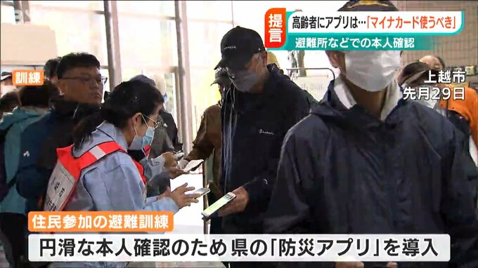 住民が参加した避難訓練では避難所などでの本人確認をスムーズに行うため、新潟県が開発した『防災アプリ』が試験的に導入されました。