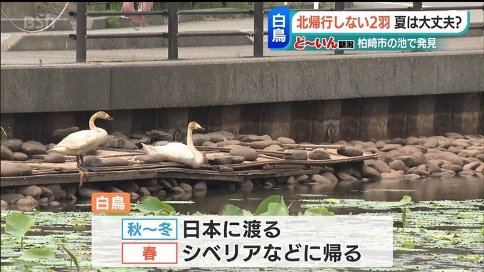 「柏崎市の池に羽を一部失った白鳥と、それに寄り添う白鳥がいる。だんだん暑くなる中で頑張っているので、とても心配…」という情報が今回、視聴者から寄せられました。