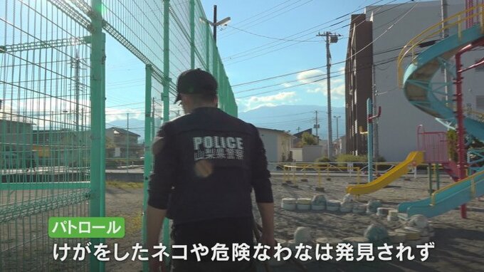 片足のないネコが相次いで見つかった問題で、警察は危険なワナが仕掛けられた可能性があるとして捜査をはじめ、11月1日、緊急のパトロールを行いました。