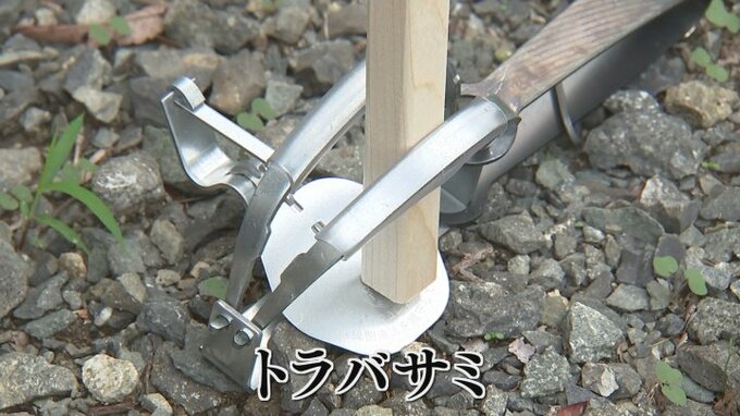金属で野生動物の足を強く挟み込む「トラバサミ」です。