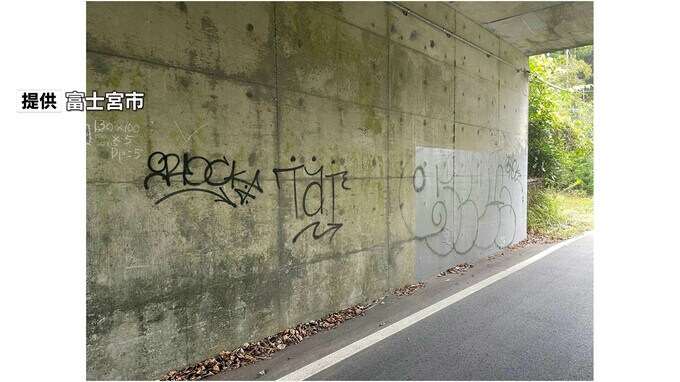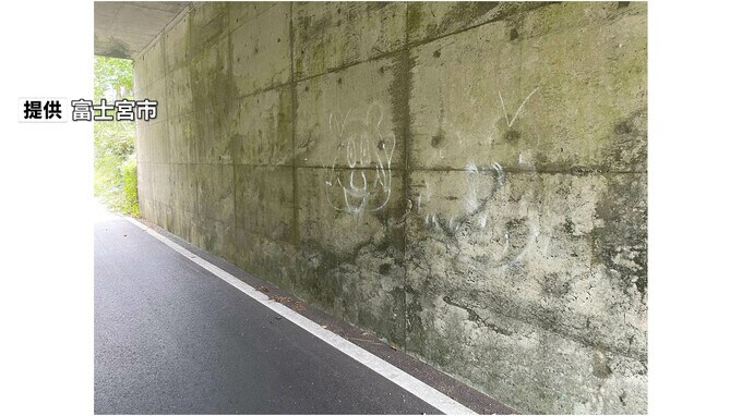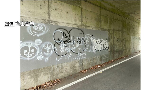 静岡県富士宮市は、市が管理する道路と構造物にスプレーによる落書きの被害があったと11月1日、発表しました。