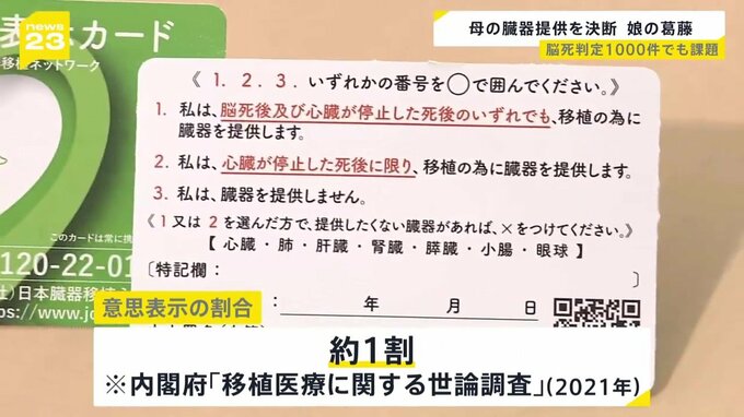 臓器提供を希望するか、意思表示をしている人は、現状、1割ほどに留まっていています。