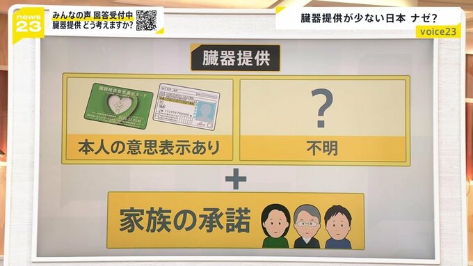伸び悩む理由としては、そもそも意思表示をしている方が少ない。家族の承諾もハードルになっていると言われています。