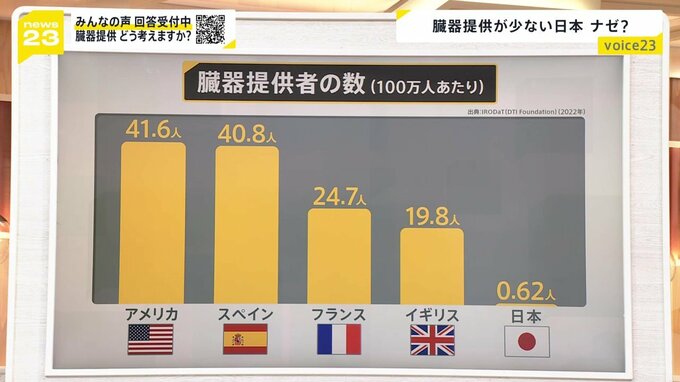 2023年は、脳死判定の中で、臓器提供が過去最多に上りました。ただ、海外と比べますと、国内の臓器提供件数は極めて少ない。