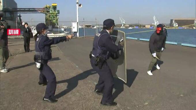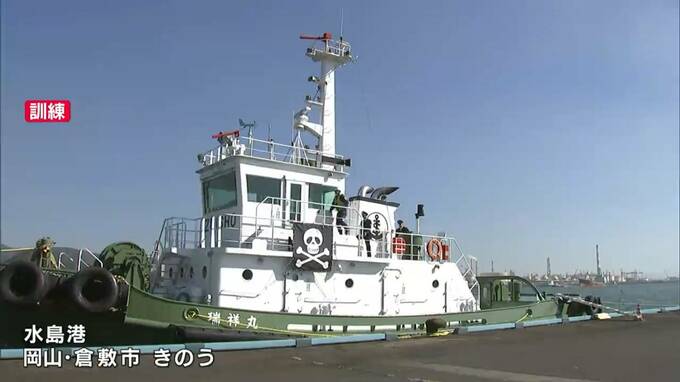 倉敷市の水島港で、テロリストの襲撃に備えた合同訓練が、1日に行われました。水島港で行われた訓練には、岡山県の港湾関係者のほか、海上保安部や警察などから約50人が参加しました。