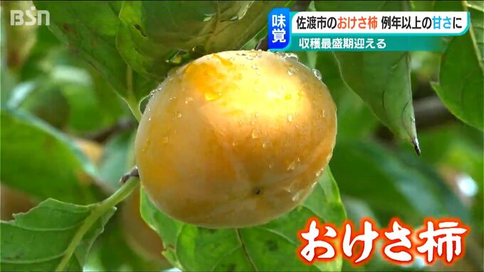 新潟県佐渡市の秋の味覚『おけさ柿』の収穫が最盛期を迎えています。陽をたっぷり浴びて、例年以上の甘さに仕上がったということです。
