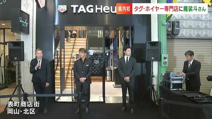 オープニングイベントには、ゲストに元K―1ファイターの魔裟斗さんが登場しました。高級時計などを販売する岡山市北区のトミヤコーポレーションが運営するもので、ドイツの自動車メーカー・ポルシェとのコラボ品のほか、スマートウォッチなどが高級感あふれる店内に多数並んでいます。
