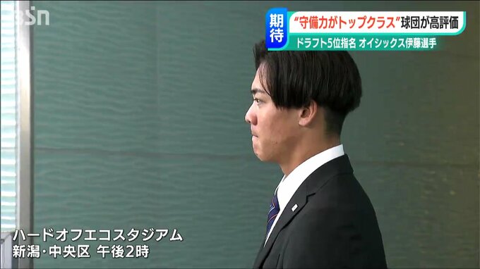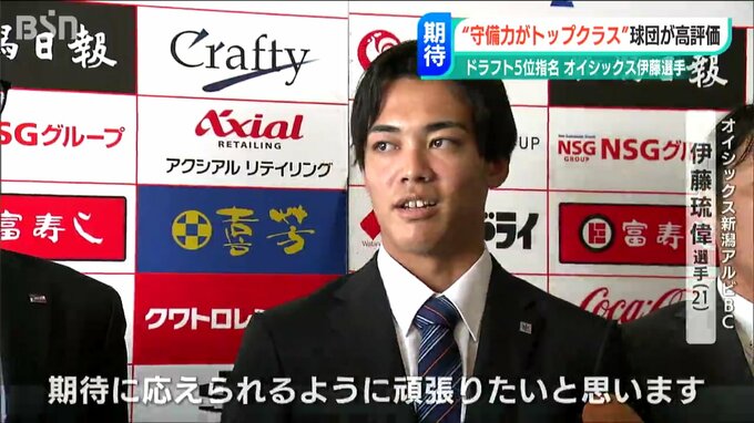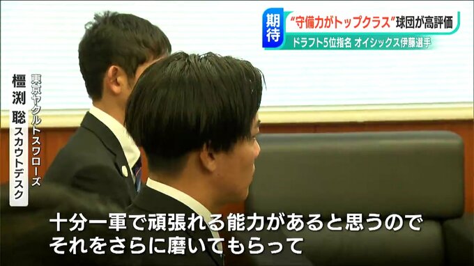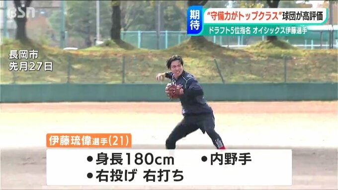 ヤクルトスワローズからドラフト5位指名を受けたオイシックス新潟アルビレックスBCの伊藤琉偉 選手。2日、球団が挨拶に訪れ、「守備力がトップクラス」と期待を寄せました。