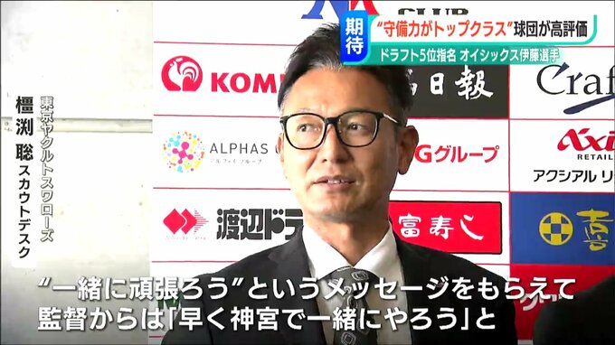 【ヤクルトスワローズ 橿渕聡 スカウトデスク】「彼の一番の特徴は柔らかいスローイングとグラブさばき、守備力だと思っています。”一緒に頑張ろう”というメッセージをもらえて監督からは『早く神宮で一緒にやろう』そういう言葉をもらってきました」